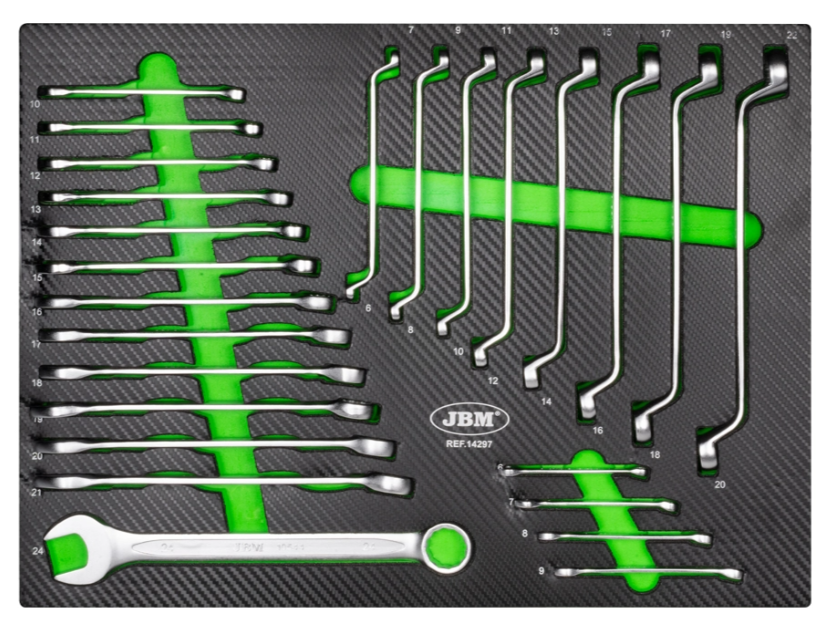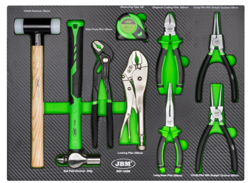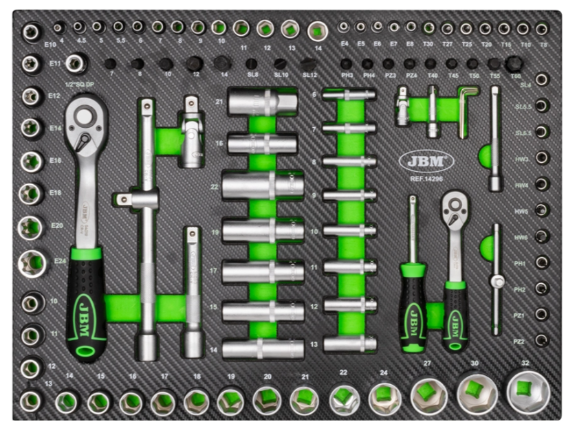 Fourni avec 172 outils dans des inserts en mousse imitation fibre de carbone.