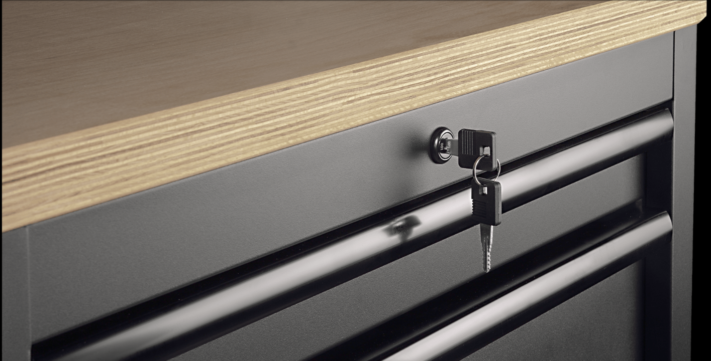 Long Life Performance vous propose ce Mobilier d’atelier 4 éléments KRAFTWERK 3964B-BLK Hêtre BLACK